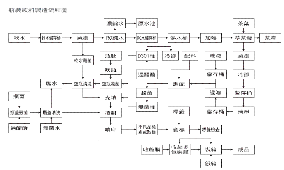 • 果汁、茶飲料罐裝生產線工藝流程圖