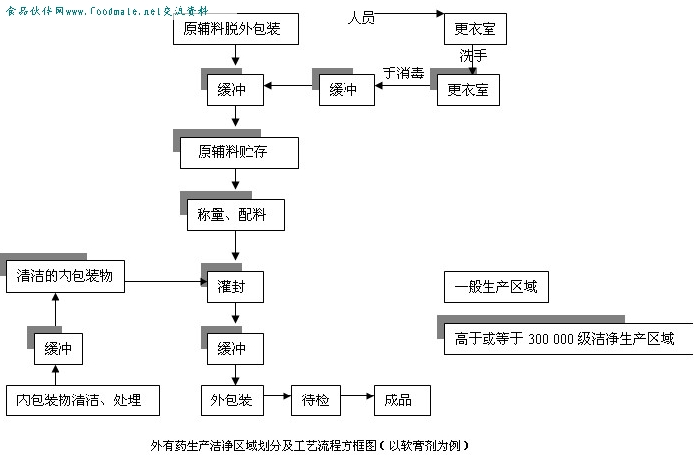 丸劑、硬膠囊製劑生產潔淨區域劃分及工藝流程方框圖