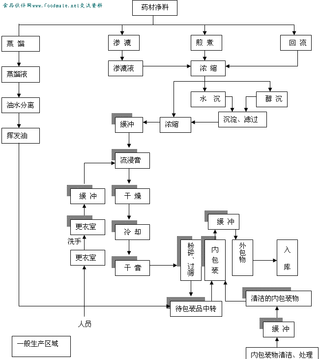 中藥提取生產潔淨區域劃分和工藝流程