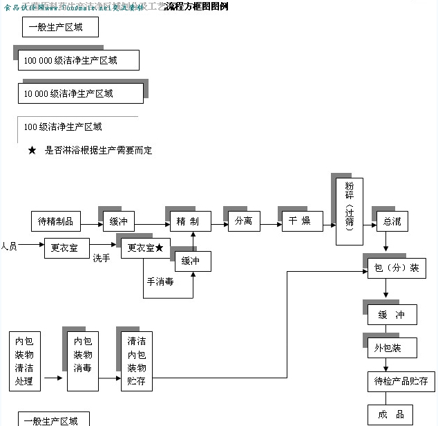 無菌原料藥生產潔淨區劃分及工藝流程方框圖圖例