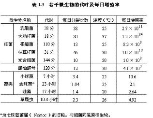 核心提示:若幹微生物的代時及每日增殖率