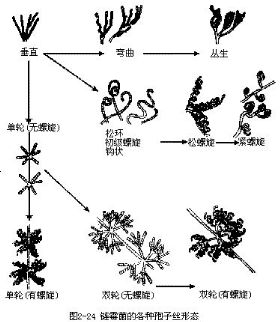 鏈黴菌的各種孢子絲形態