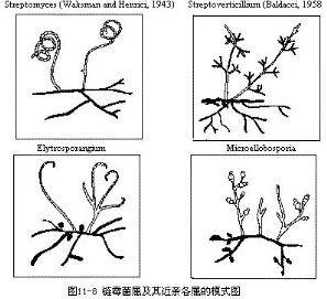 核心提示:鏈黴菌及其近親各屬的模式圖