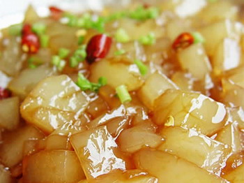 涼粉 因(yin)其(qi)在(zai)加(jia)工(gong)過(guo)程(cheng)中(zhong)要(yao)加(jia)入(ru)適(shi)量(liang)白(bai)礬(fan),而(er)白(bai)礬(fan)具(ju)有(you)減(jian)緩(huan)腸(chang)胃(wei)蠕(ru)動(dong)的(de)作(zuo)用(yong),用(yong)涼(liang)粉(fen)佐(zuo)酒(jiu)則(ze)會(hui)延(yan)長(chang)酒(jiu)精(jing)在(zai)胃(wei)腸(chang)中(zhong)的(de)停(ting)留(liu)時(shi)間(jian),因(yin)而(er)增(zeng)加(jia)人(ren)體(ti)對(dui)酒(jiu)精(jing)的(de)吸(xi)收(shou),同(tong)時(shi)也(ye)增(zeng)加(jia)了(le)酒(jiu)精(jing)對(dui)胃(wei)腸(chang)的(de)刺(ci)激(ji),減(jian)緩(huan)了(le)血(xue)流(liu)速(su)度(du),促(cu)使(shi)人(ren)醉(zui)酒(jiu),危(wei)害(hai)健(jian)康(kang)。