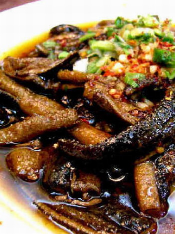 成都:泡椒墨魚仔 一個叫“毛了”的作者是這樣寫川味海鮮的:自從海鮮變節從了川菜以後,它仿佛煥發了它的第二春!鐵例之一便是泡椒墨魚仔。這菜全靠四川的泡海椒(子彈椒),要選色澤鮮紅、體大肉厚的海椒,泡的也需恰到好處。成菜紅白分明,賞心悅目!泡椒的味全在墨魚仔裏麵,還帶點回甜的味道。