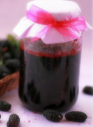桑椹果醬 桑椹是“民間聖果”,味甘、性寒,營養是蘋果的5-6倍,是葡萄的4倍,其藥用和食用價值都非常高。把它做成桑椹果醬後,保存期限變長不說,還可以當成主材為孩子製作出各式各樣的點心。