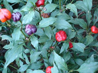 南瓜椒為一年生茄科植物,幼苗莖、葉均為紫色,隨著生長逐漸由紫轉為墨綠色,每葉腋處著生一朵花,2朵花甚少,花紫色,花後結紫色果,先紫後紅,實為罕見,更奇特的是:其果形狀如南瓜,所以稱之:南瓜椒。株高盆栽45-60厘米,地栽可達1.3米,單果重一般在3-6克,株結果30-50個,最多可結87個。南瓜椒可食用,辣味特濃;也可作盆栽觀賞,紫的、紅的果,綠的葉,非常漂亮,觀賞期從5月一直到11月,長達半年之久。南瓜椒抗性強,栽培與當地辣椒類相同。