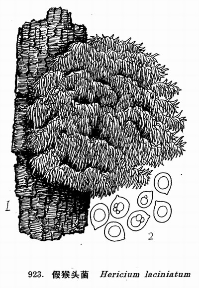形態特征:子實體中等至更大,白色至淡黃色,直徑可達10-25cm,由基部連續多次分枝的菌體組成,分枝的頂端小枝纖細,向各方向伸出,枝端小刺長1-5mm。孢子無色,光滑,橢圓形或近卵圓形至近球形,2.8-4.5μm×2.6-4.3μm。內含一油滴。油囊體淡黃褐色,50-60μm×5-7μm。經濟價值:此菌可食用,且味較好,可馴化人工栽培。此種比猴頭菌分枝多,且小刺短而細。另外,此種與珊瑚狀猴頭菌(H. coralloides)外形極相似,但此後種主枝粗狀,其頂端小刺長,下垂。
