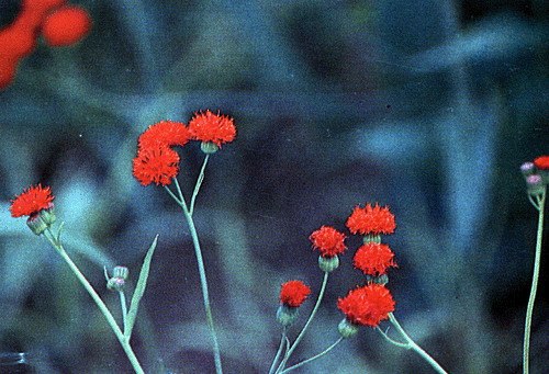 植物形態 一年生草本,高10~50cm。莖分枝,枝柔弱,粉綠色。葉互生,稍帶肉質,莖下部葉卵形,攀狀分裂,長4~9cm'上部葉較小,抱莖,上麵綠色,下麵多紫紅色。頭狀花序直徑1~1.3cm,有長梗,花枝常2歧分枝; 總苞圓柱形,苞片1層,約與花冠等長;花管狀,紅色,兩性。瘦果圓柱形,長5~6mm,有棱,冠毛白色,柔軟。花期春至秋季。