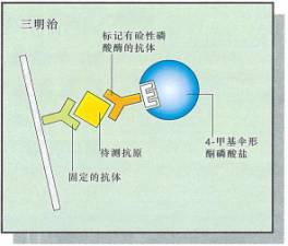 原理 應用酶聯免疫法,最後測藍色熒光(ELFA)抗原(細菌、蛋白)的檢測是應用一種夾心的技術,包被針上有抗體包被,所測得的熒光與標本中抗原的含量成正比。 測試範圍 用以食品及環境樣本中的致病菌包括:沙門氏菌、李斯特菌、單核細胞增生李斯特菌、葡萄球菌腸毒素、大腸埃希菌O157、彎曲菌、免疫濃縮沙門氏菌、免疫濃縮大腸埃希菌O157。 即可用試劑