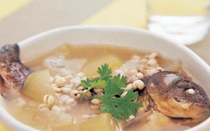 核心提示:紅豆冬瓜鯽魚湯(鯽魚+冬瓜):鯽魚性溫味甘,和胃補虛,消腫去毒,利水通乳,但若與冬瓜同食會使身體脫水。