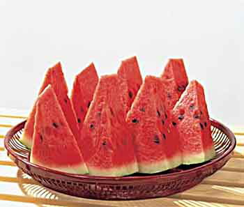 西瓜使鹽分順利隨尿排出,對膀胱炎、心髒病、腎髒病有療效。豐富的鉀含量可修飾雙腿。