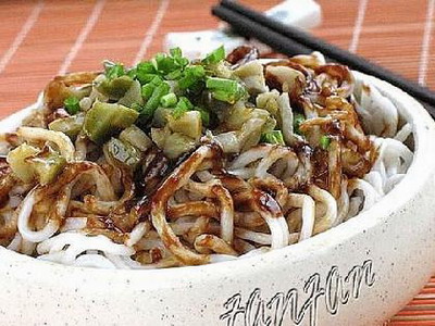 熱幹麵是武漢的傳統小吃之一。20世紀30年(nian)代(dai)初(chu)期(qi),漢(han)口(kou)長(chang)堤(di)街(jie)有(you)個(ge)名(ming)叫(jiao)李(li)包(bao)的(de)食(shi)販(fan),在(zai)關(guan)帝(di)廟(miao)一(yi)帶(dai)靠(kao)賣(mai)涼(liang)粉(fen)和(he)湯(tang)麵(mian)為(wei)生(sheng)。有(you)一(yi)天(tian),天(tian)氣(qi)異(yi)常(chang)炎(yan)熱(re),不(bu)少(shao)剩(sheng)麵(mian)未(wei)賣(mai)完(wan),他(ta)怕(pa)麵(mian)條(tiao)發(fa)餿(sou)變(bian)質(zhi),便(bian)將(jiang)剩(sheng)麵(mian)煮(zhu)熟(shu)瀝(li)幹(gan),晾(liang)在(zai)案(an)板(ban)上(shang)。一(yi)不(bu)小(xiao)心(xin),碰(peng)倒(dao)案(an)上(shang)的(de)油(you)壺(hu),麻(ma)油(you)潑(po)在(zai)麵(mian)條(tiao)上(shang)。李(li)包(bao)見(jian)狀(zhuang),無(wu)可(ke)奈(nai)何(he),隻(zhi)好(hao)將(jiang)麵(mian)條(tiao)用(yong)油(you)拌(ban)勻(yun)重(zhong)新(xin)晾(liang)放(fang)。第(di)二(er)天(tian)早(zao)上(shang),李(li)包(bao)將(jiang)拌(ban)油(you)的(de)熟(shu)麵(mian)條(tiao)放(fang)在(zai)沸(fei)水(shui)裏(li)稍(shao)燙(tang),撈(lao)起(qi)瀝(li)幹(gan)入(ru)碗(wan),然(ran)後(hou)加(jia)上(shang)賣(mai)涼(liang)粉(fen)用(yong)的(de)調(tiao)料(liao),弄(nong)得(de)熱(re)氣(qi)騰(teng)騰(teng),香(xiang)氣(qi)四(si)溢(yi)。人(ren)們(men)爭(zheng)相(xiang)購(gou)買(mai),吃(chi)得(de)津(jin)津(jin)有(you)味(wei)。有(you)人(ren)問(wen)他(ta)賣(mai)的(de)是(shi)什(shen)麼(me)麵(mian),他(ta)脫(tuo)口(kou)而(er)出(chu),說(shuo)是(shi)"熱幹麵"。從此他就專賣這種麵,不僅人們競相品嚐,還有不少人向他拜師學藝。