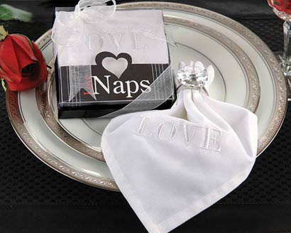 蜜月情侶餐具-繡有LOVE字樣的餐巾