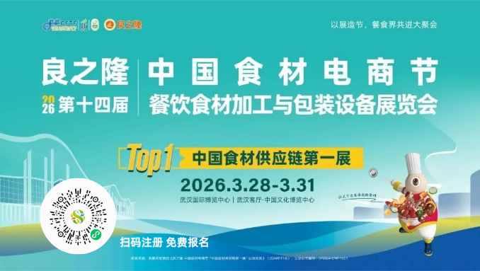 2026年3月28日-31日,良之隆·2026第十四屆中國武漢食材電商節&餐飲食材加工與包裝設備展覽會將在武漢國博中心和武漢文化博覽中心隆重舉辦。本屆食材展規模將達到35萬㎡,參展商預計超過6000家,展品覆蓋餐飲食材全產業鏈,一站式滿足酒店餐企食材采購和菜品創新的需求。展會還將以展造節,通過240場豐富多樣的活動打造海內外餐食界共進大聚會,助力提升參展參觀成效,讓餐飲人空手來、滿載歸!