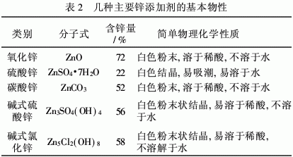 1 鋅添加劑的種類及性質