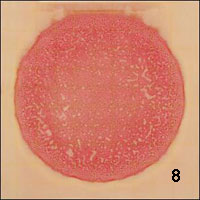 Coliform count = 0注意圖4至圖9中培養基顏色的變化。隨著大腸菌群數和產酸的增加,培養基的顏色由淡桔黃色(圖4)逐漸向明顯的粉紅色(圖9)轉變。同時做陰性對照有助於區分培養基的顏色。 |