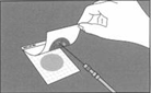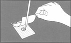11、輕輕的壓下,使樣液均勻覆蓋於圓形的培養麵積上,切勿扭轉壓板。 |