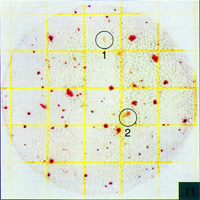 Count=83因為在petrifilm AC測試片上菌落是紅色的,你會和不透明的不規則形狀的事物顆粒區分開,見圓圈1和2. |