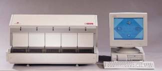VIDAS is a multi-parameter automated immunoanalyser. It comprises an analytical module, a computer and a printer. The analytical module automatically performs all stages of the analysis, including printing out the full results. It contains five sections, each accepting 6 tests, and can handle 60 tests per hour. Thanks to its speed of reaction and sectioned architecture, VIDAS? is the ideal system for handling series of analyses and urgent tests. The computer module is used to manage and print out the results. It can handle up to four analytical modules simultaneously, giving the system a capacity of 240 tests per hour.